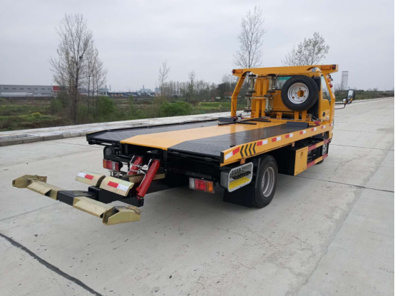 一體板:3噸上裝,4噸卷揚,21米鋼絲繩,3噸后拖臂,底板為花紋一體板(可選沖壓板),板長5.2米,雙側聯動操作,配四根捆綁帶,**小車一套,L型抱胎架一對,工具箱一個,LED工作照明燈一對,其余標配。