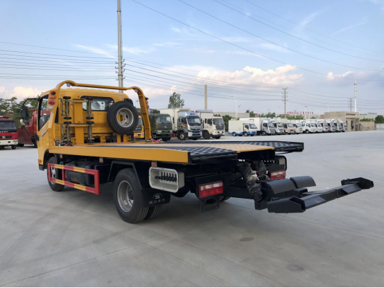 一體板:3噸上裝,4噸卷揚,21米鋼絲繩,3噸后拖臂,底板為花紋一體板(可選沖壓板),板長5.2米,雙側聯(lián)動操作,配四根捆綁帶,**小車一套,L型抱胎架一對,工具箱一個,LED工作照明燈一對,其余標配。