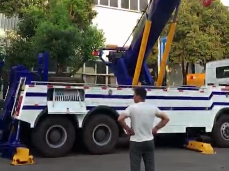 360度旋轉三節吊臂,分體三節托臂,液壓支腿肆個。分體式車廂,雙側聯動操作裝置,帶無線遙控,兩個25噸液壓絞盤,55米長鋼絲繩,一個洗手水箱,U型抱胎裝置壹套,拖車座壹套,托叉伍套,長排**帶喊話器壹套,后工作燈貳支,**燈總成壹套,**制動氣管總成壹套。